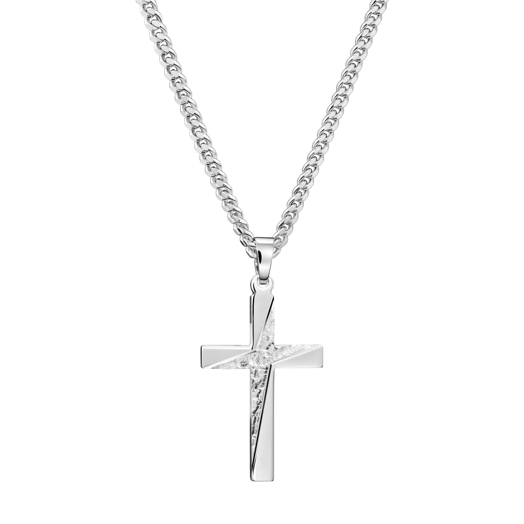 Nasz zestaw krzyżyka jest wykonany z litego srebra próby 925 i został pokryty warstwą rodu o grubości 1 mikrona.